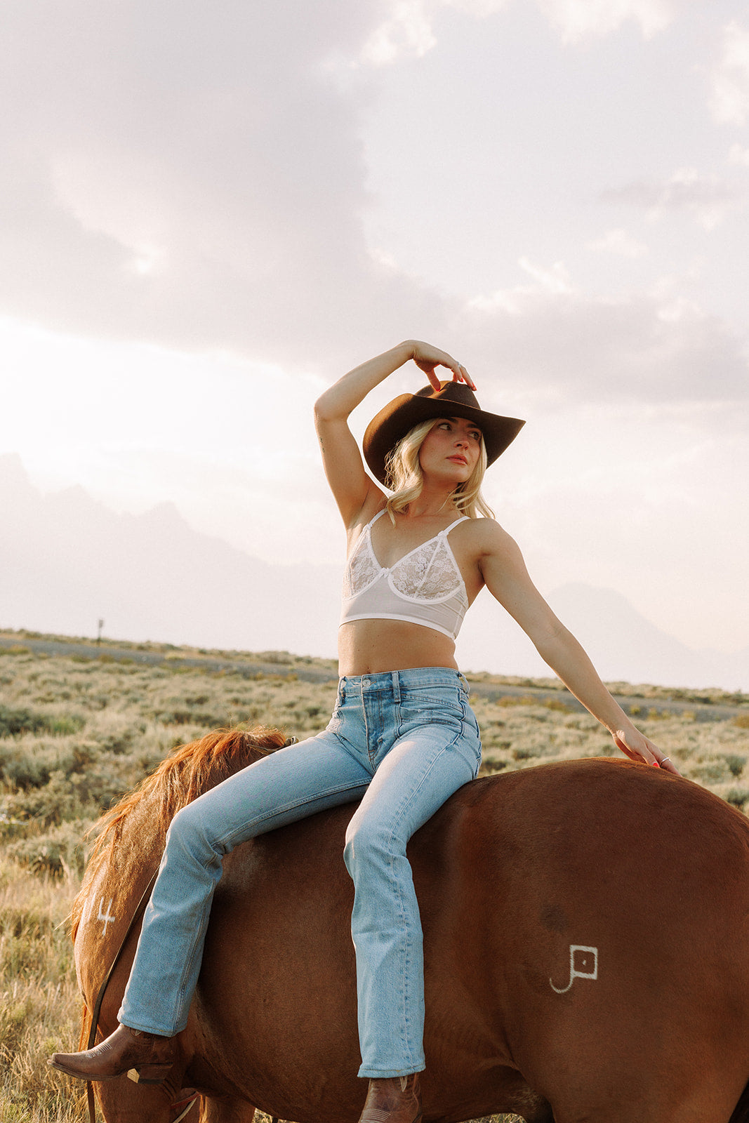 The Josie Bralette is the perfect white lace underwire bra. It features a longline mesh base for added comfort by sitting lower on the back and torso. Its sheer floral lace cups and delicate scalloped elastic trim provide support, while the underbust panel and soft elastic edge offer a secure fit. The bra also includes wire cups, adjustable hook & eye closure, and standard size adjustable straps with gold hardware.